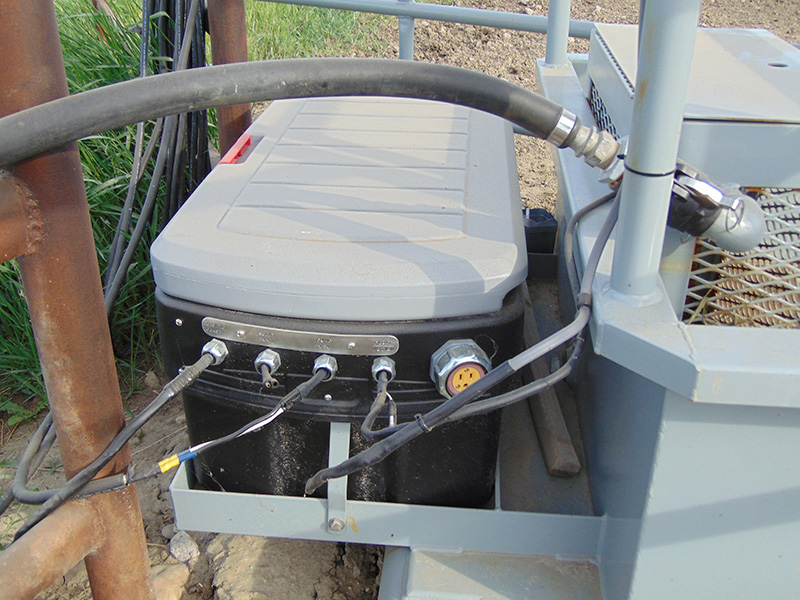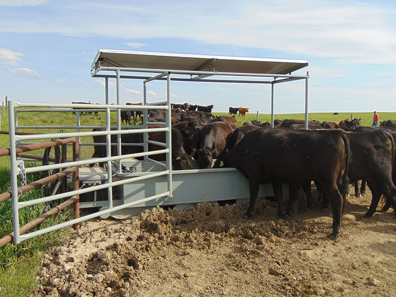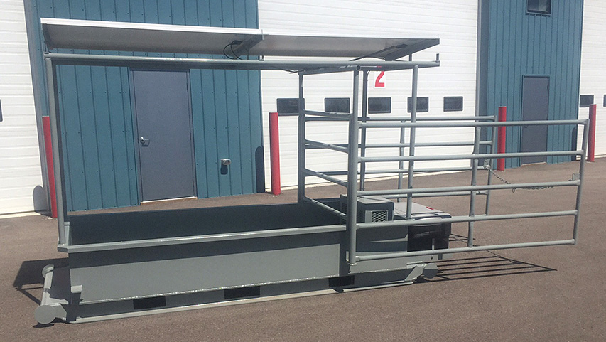 Our Portable Waterer is made to be used in any location with a water source and is solar powered, for easy use in the most remote locations. It has 450 gallon capacity and is built on a sturdy skid for easy transport with pallet forks. Can also customize with wheels for another transport option. It has fully enclosed electronics with a 24 volt (2x12volt batteries) system and operates off of 2 solar panels, which are safely mounted on top, away from cattle.